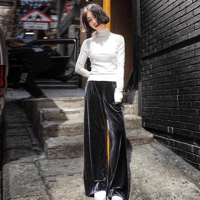 使用进口高弹不倒丝绒,拥有闪亮华丽的光泽感,面料也是非常的顺滑亲肤,这款拥有长裤脚的金丝绒阔腿裤不仅非常的保暖顺滑,还拥有颇为吸睛的金丝绒,穿在身上显得身材比例好,非常的亮眼。
