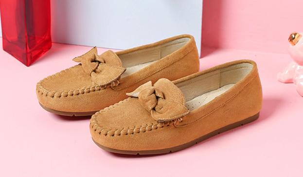 真皮豆豆鞋根据工艺的不同,主要是绒面鞋以及反绒鞋这两种。绒面鞋是指正绒皮,皮面是用磨革机装上砂纸从粗砂到细砂,直到将头层皮磨到没有粒面为止。此时看上去会有一些细小的绒,光泽感较强,这就是绒面豆豆鞋。