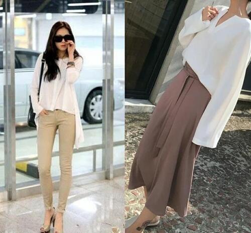 从搭配图中可以看出,图一,图二明显比其他的搭配图,更显高级,图一就是简单的衬衫加长裤,衬衫加半裙,犹豫是