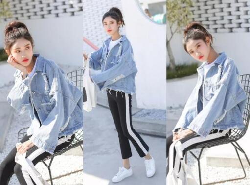 大家都说小白鞋太单调,没什么看点,我却觉得正因为这样简约的设计,才会让它穿出无限的可能性,瞧一瞧,清新蓝色牛仔外套,春天上身很显青春气质,还很时髦feel,流苏破洞的设计,更具时髦感,看起来还灰常潮的哦,下身的小黑裤,是属于运动款式,侧边条纹的设计,增加拉长视觉上的比例,看上去就很显高,九分的裤长,增加高的视觉感,脚踏双小白鞋,让你造型舒适又休闲,还很显气质的。