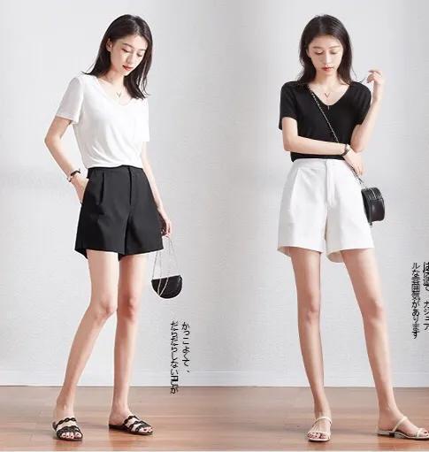 盛夏时节还有一种裤型也特别显年轻优雅,它就是西装短裤,我们只要准备黑白二个色的西装短裤就可以了,它可以搭配你衣橱里的所有上衣,只要注意颜色的搭配就又好看又年轻。
