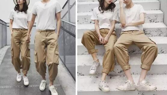 除了阔腿裤之外,工装裤搭配白色的T恤也是美得不要不要的节奏啊,看这情侣们一起穿搭出来的效果,简直帅得不让人呼吸的节奏,选择工装裤,还能很好地遮住你腿部不完美的地方,恩,觉得烦恼穿搭什么的话,直接照着穿就可以出门了!