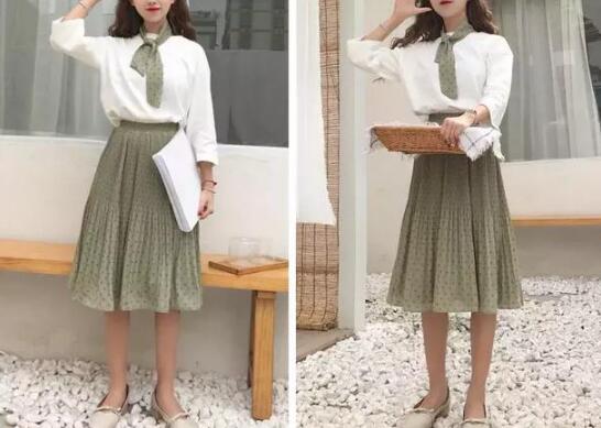 按照惯例,爱美的女生绝不能放弃白色T恤搭配半身裙,绿色的半身裙,带点小清新,特别是脖子上的这条小丝巾的点缀,把整个搭配穿搭得更好看了!简单的T恤不仅依然百搭,还提升优雅的气质,整个look的时髦指数偷偷往上蹭蹭涨呢。