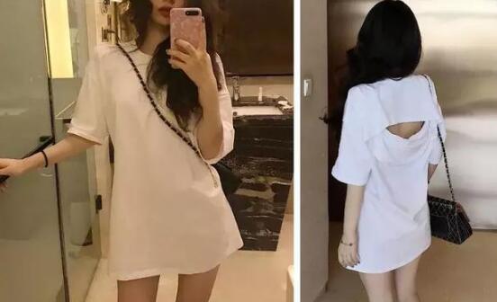 现在的女生都喜欢露大长腿,满满的诱惑感啊,一件白色的长款T恤,省去了下装的搭配心思,保守的女生必须得穿安全裤啊,作为女生要好好爱护自己啊,像长款的T恤穿单件直接搭配老爹鞋,贼酷的,最近的流行穿法哦!跟上潮流吧!