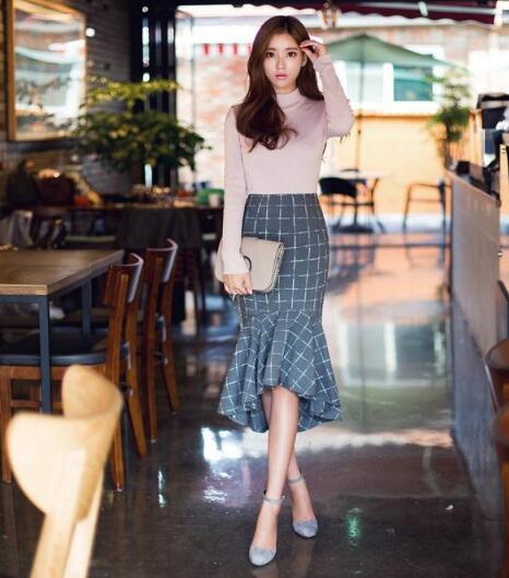 经典的格子条纹元素和鱼尾裙结合在一起,更加经典有看点。再搭配一件简单的粉红色毛衣,干练有气质。毛衣搭配裙子凸显出细致的腰身,散发优雅的魅力,你pick了吗。