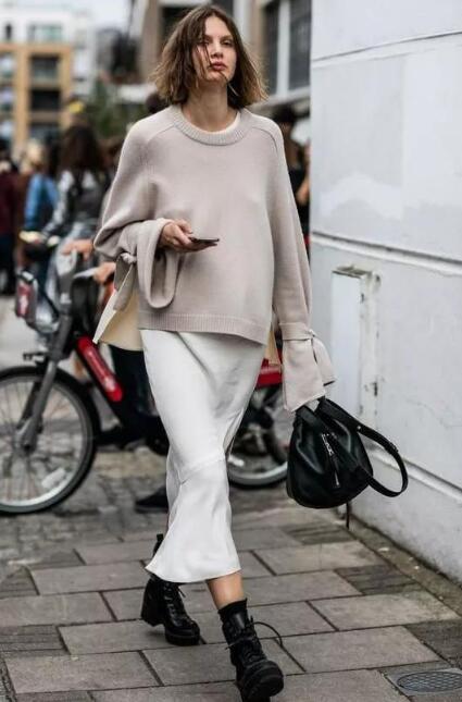白色的裙子凸显了优雅的气质,简单大方。搭配一件浅色的毛衣,整体颜非常素净,给人十分舒服的感觉。毛衣搭配裙子再搭配一双黑色的靴子点缀了整个搭配,使整个穿搭有了亮点。男装搭配,