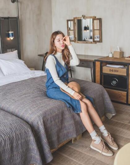 牛仔裙真是经典不过时,搭配一件白色的毛衣,视觉上十分使人舒服。再搭配一双浅色的鞋子和长袜,兼得风度和温度,简单的搭配却让人过目不忘。这时候再搭配一顶与鞋子颜色几乎一致的帽子,简单的配色,十分协调。