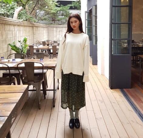 碎花裙真是文艺气质仙女的最爱,搭配一款简单的白色毛衣,毛衣搭配裙子非常显气色。鞋子选择小皮鞋也十分淑女,整体搭配透露着小家碧玉的美感。