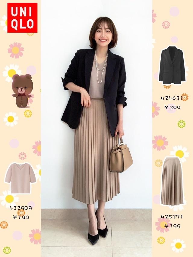 大地色的百褶裙,总是给人一种非常温柔的气息。搭配浅灰色针织衫,气质温柔高级。黑色的西服外套,将职场女人的穿搭风完美演绎。这种简约而不简单的穿搭,最是经典好看啦。即将复工的小仙女们,快点准备起来吧!