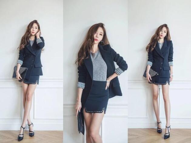 即使是穿职业装也是要秀出好身材,这是一件非常显身材的英伦风拼色西装,随意穿上身都是很显瘦的,非常显身材,搭配开叉款的短裙,不仅可以巧遮到你臀部的赘肉,同时还很有范儿 ,很时髦。