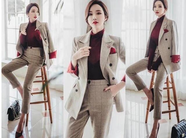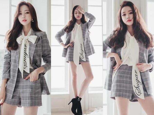 对于上班族的女生来说,就是没有办法避免要穿西装的,那么今年流行的英伦风西装就是很不错的选择,随意穿上身就是突显身材曲线的,特别的显瘦,搭配同款的格纹短裤,又可以秀出你的大长腿,而且这样穿超级时髦,还有气场。