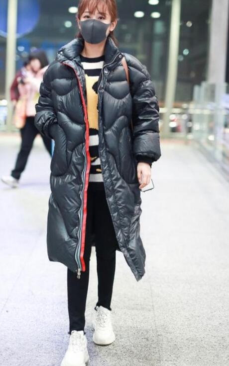 黑色是最显瘦最耐脏的,这是毋庸置疑的。冷到想要裹被子出门?让长款黑色羽绒服来拯救你,遇上拼色毛衣,干练又不失靓丽,打造时尚淑女范。选择紧身小黑裤,以及小白鞋,形成鲜明的对比,造成强烈的视觉冲击感,简单而不平凡,活力值满分,等你来pick哟!