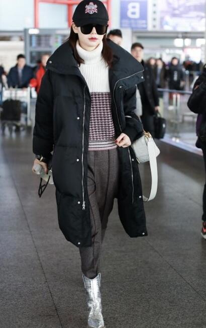 要想凹造型,那黑色的棒球帽是很不错的选择。pick白色高领毛衣,让黑色长款羽绒服来拯救你,知性之余更是保暖,时髦指数翻一番。选择灰色毛呢裤,精简中带有一丝率性,打造典雅随性范。脚上搭配银色短靴,彰显十足个性,有型又拉风,你心动了吗?