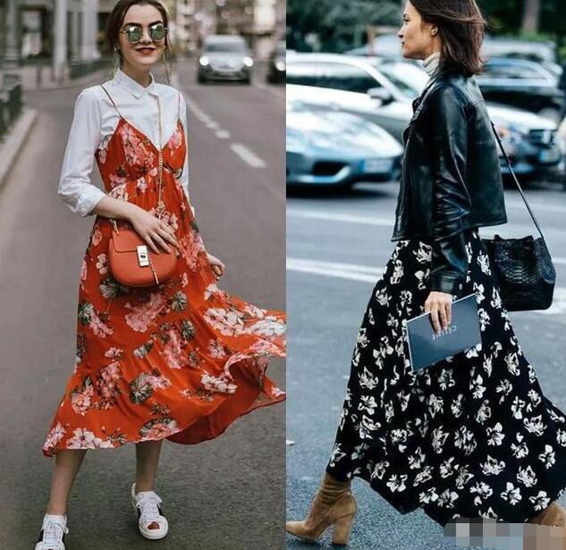 吊带裙不能春天穿?当然不是,只要内搭一条长袖上衣就可以,比如红色印花吊带裙搭配白色衬衣,搭配运动鞋,显白有范,或者搭配纯色薄款针织毛衣,知性又大气。印花裙怎么搭配衣服?
