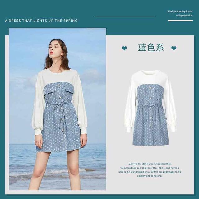 腰间可以适当的系一个清纯的蝴蝶结,白色与蓝色的拼接色原本就清纯无比,这样也显得女人更年轻一些了。