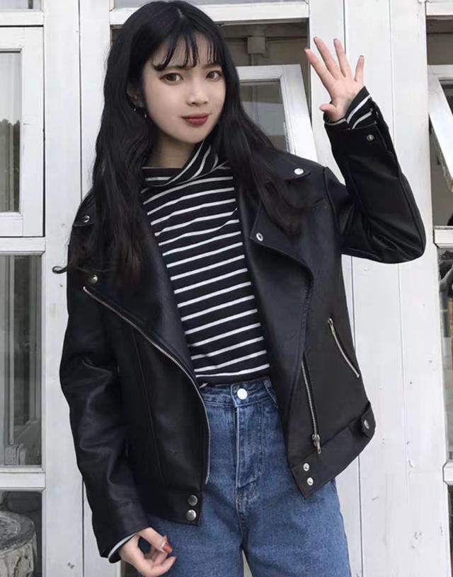 很多人都觉得黑色皮衣会有一种比较浓郁的朋克风格,只有那种比较酷酷的女生才能驾驭得了,其实皮衣的风格和搭配的衣服有很大的关系,我们可以根据自己的情况来选择衣服。如果日常的传达偏向于复古酷帅风格的话,那就选择类似于工装风格的衣服来搭配皮衣。
