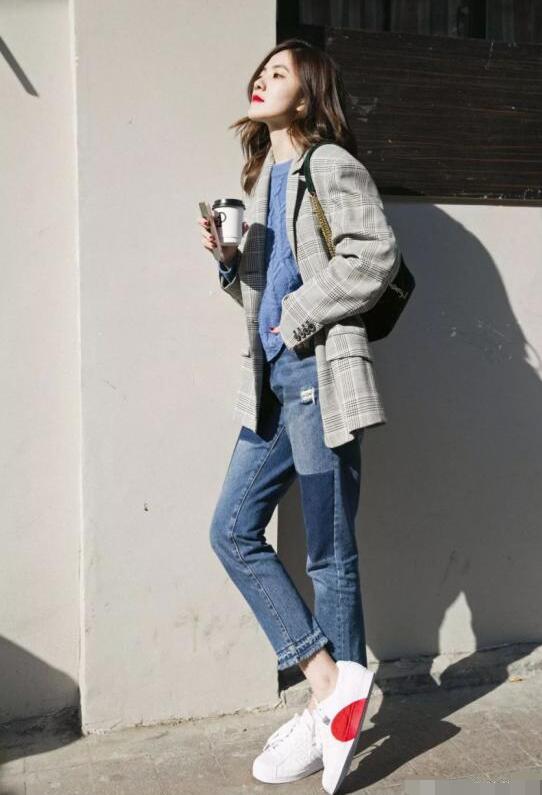 西装和牛仔裤组成的cp一定是今年秋天最为火爆的穿搭组合啦,说到西装,就不得不承认他实在是太显瘦了,挺阔的版型以及硬朗的面料,能够瞬间将我们的身材变得更加高挑,身高不够的女孩可以选择修身一些的款式,身材高挑的妹子可以大胆的选择带有阔肩设计的西装外套,可以更显气场哦!