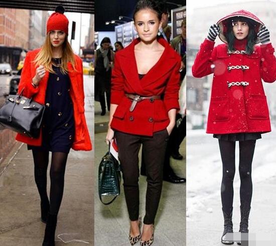 如果不想穿大面积的红色大衣,可以选择短款的红色外套,也很讨喜。短款红色外套很适合小个子的女生穿着,选择修身型或者A字型的都可以,看看图中的是俄罗斯名媛DUMA,身高只有150cm,突出腰线,穿了小脚裤露出脚踝,锁骨,手腕,是不是超显瘦显高?