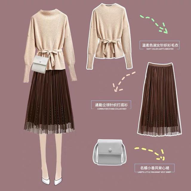有的女人特别适合温柔甜美风格,米色的温柔针织毛衣,还做了收腰的设计,看起来特别的淑女。一条纺纱半身长裙就让这一套穿搭的风格变得更加完满,在搭配上马卡龙色系的斜跨皮包,整套穿搭看起来又甜美又淑女。