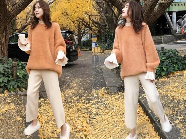 2、米色裤子今年已经是超出了我的想象中的时尚感了,同样是宽松的版型设计,让你穿上身就可以足够的时髦感了,针织的材质让你可以获得更多的舒适感,高腰的设计又那么的帮你遮住小肚腩,这个秋冬没有入手的话,那么在开春可以考虑入手一款,穿上就很显瘦。