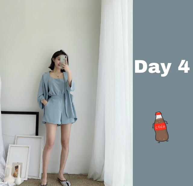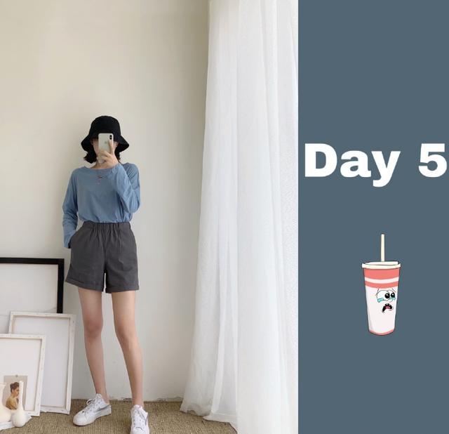 虽然也是蓝色系的一员大将,但是雾蓝色给人的感觉与蓝色却大相径庭。自带朦胧滤镜的雾蓝色仿佛在长衫上盖了层薄纱,超级有神秘感。搭配同样深色系灰色短裤,一点也不突兀。最后搭配小白鞋作为整套搭配的点睛之笔。