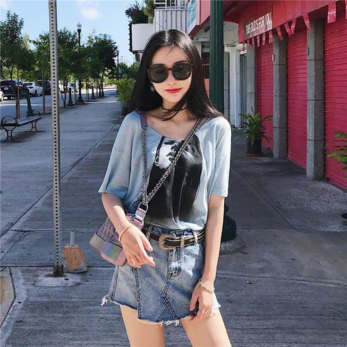 整体蓝色调的搭配让你整个夏季看起来是那么的清爽动人,牛仔裤裙不规则的长短设计,显得个性范十足,而且完全不用担心会走光,还露出白皙的大长腿,无论搭配运动鞋还是高跟鞋,都十分好看。