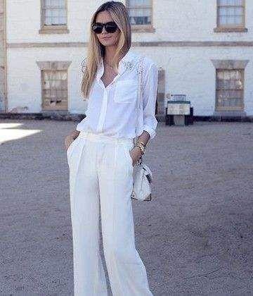 白色的阔腿裤让你看起来夏季不是特别闷热,尤其再搭配白色的衬衣,更显清凉。如果你的腿型不好看,就穿阔腿裤吧,它能很好的把你的腿型问题掩盖掉,一身白色的装扮优雅范十足。