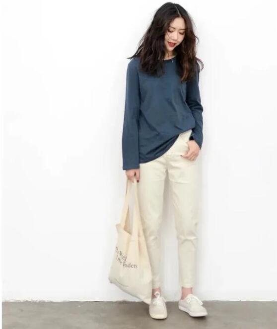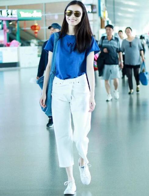 你看这款宽松版型的白色牛仔裤,十分亮眼的时尚款式,看似简单的款型有那么一点点小心机。像倪妮这样搭配一件深蓝色的T恤衫真是干净清爽又好看,第一眼就被它的清爽味道所深深吸引。