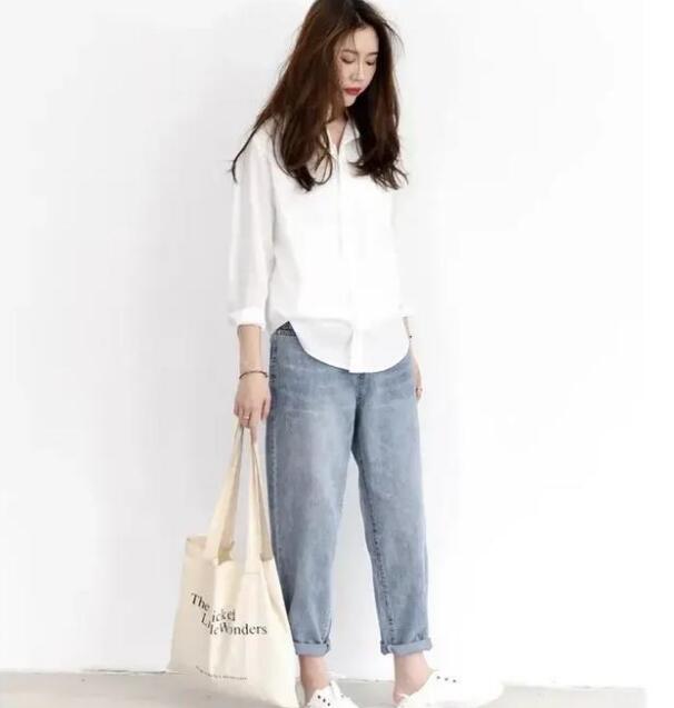 哈伦牛仔裤是一种随性自然的休闲款裤型,它最大的优点就是可以很好的修饰腿型。搭配一件纯白色的白衬衫简单经典又好看,这绝对是一种减龄的绝佳款式。