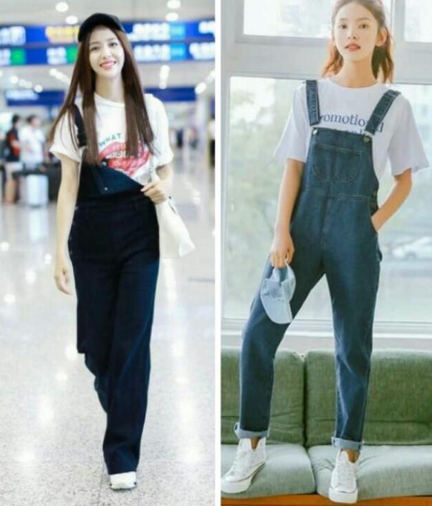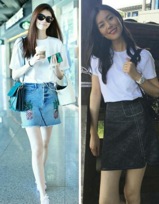 佟丽娅和章若楠的这组穿搭,白T搭配牛仔背带裤,就像校园里的大学生,青春的气息扑面而来,年轻与时髦的完美结合,青春靓丽,穿出满满少女感。