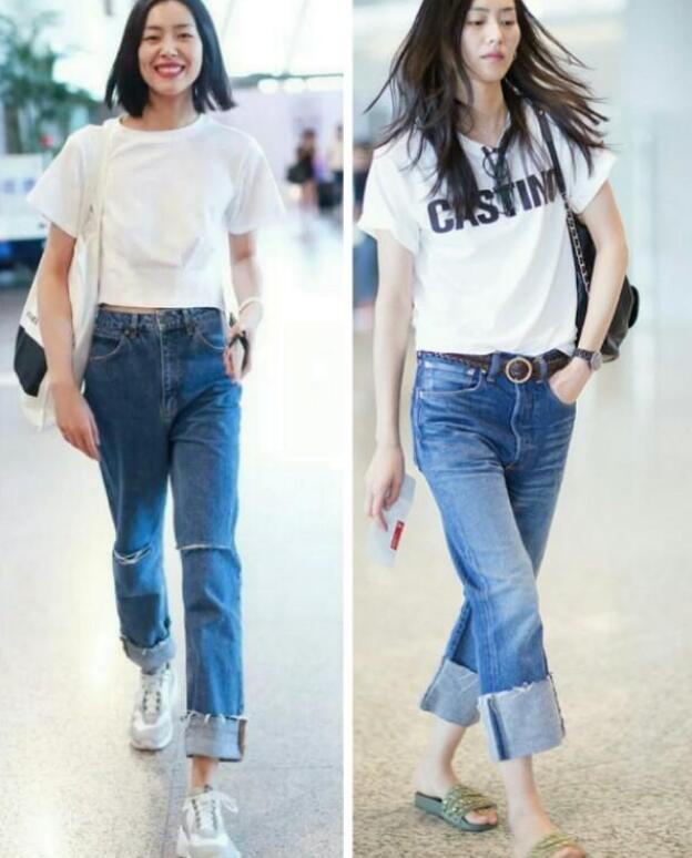 大表姐刘雯给我们做了很好的示范,简约的白T和简约的牛仔裤,休闲舒适简单又不会过时的穿搭,如果想增添街头风,可以搭配破洞牛仔裤。