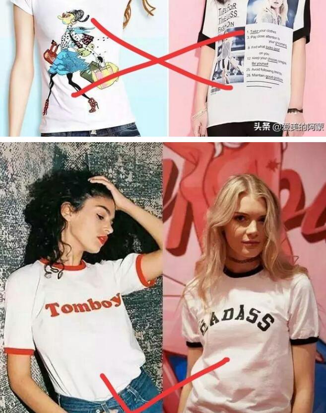 3.可以选择带有图案或者字母的白T增加趣味和色彩,但是避免图案太过奇怪或者艳丽的款式,真的很low。