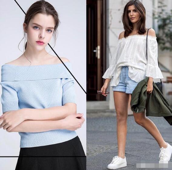 一字肩其实跟V领的效果类似,但是在显瘦以及性感方面却更胜于V领,虽然一字肩不适用于骨架较大的女生,但若只是纯粹的胖,而非大骨架,那么在所有上衣款式中,一字肩绝对是显瘦的最佳单品。