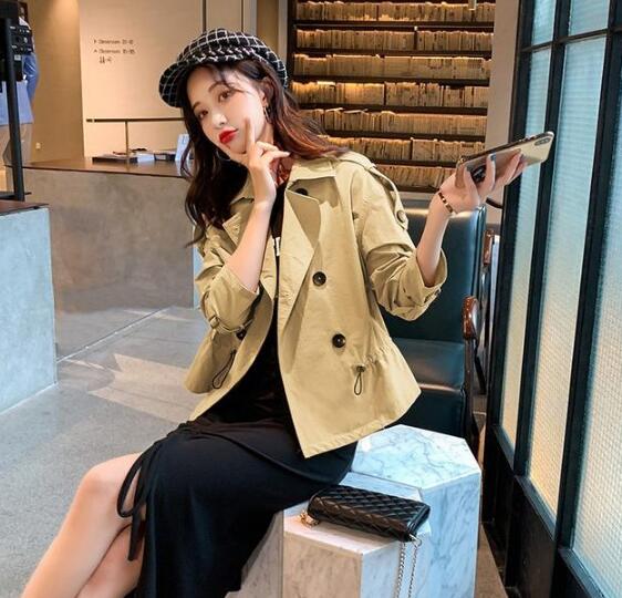 韩版宽松抽绳休闲风衣外套,温婉简约,英伦风风衣小外套,个性时髦的可翻可立的领型设计,很好的修饰脸型,干练气质,经典耐看的卡其色,浓浓的英伦风,淡淡的暖系色调,无处不在的优雅气质,抽绳收腰的设计,修身显瘦设计,凸显曼妙曲线,弧度的衣摆,修饰身材,更显高挑身材,更加适合身材娇小的女生穿搭。