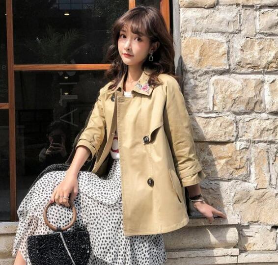 时尚小个子短款风衣,经典耐看的卡其色,简约大方的纯色,很实穿又很洋气,机车风的短款设计,休闲又帅气,帅气范儿十足。小短款的设计,拉链的门襟,很简单但又不会让人觉得单调,大方的大翻领,立体有型的修身裁剪,展现出纤瘦苗条的身姿曲线。
