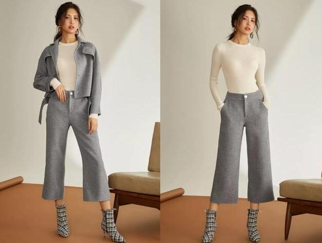 毛呢材质的阔腿裤在今年来说特别的流行,一般高级感的阔腿裤都是毛呢材质设计的,这款是浅灰色设计的颜色,更适合成熟稳重一些的女性穿搭,特别是在职场上的女性,来一条浅灰色的阔腿裤,让你穿上显瘦很有气质,搭配格子短靴,阔腿裤穿什么鞋好看?带有高跟设计的短靴,穿上就有女性的魅力,关键还能显瘦显气质。