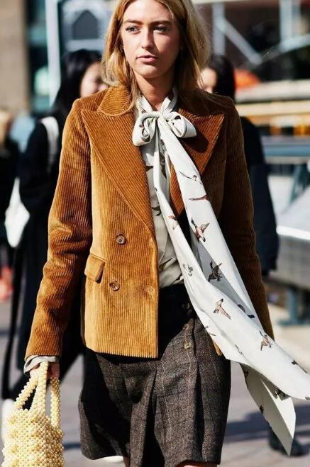 今年又是一年复古年,好多品牌都推出了灯芯绒的小外套,搭配飘带印花衬衣,超长的系带蝴蝶结,复古温柔,走在一点也不用担心会撞衫。