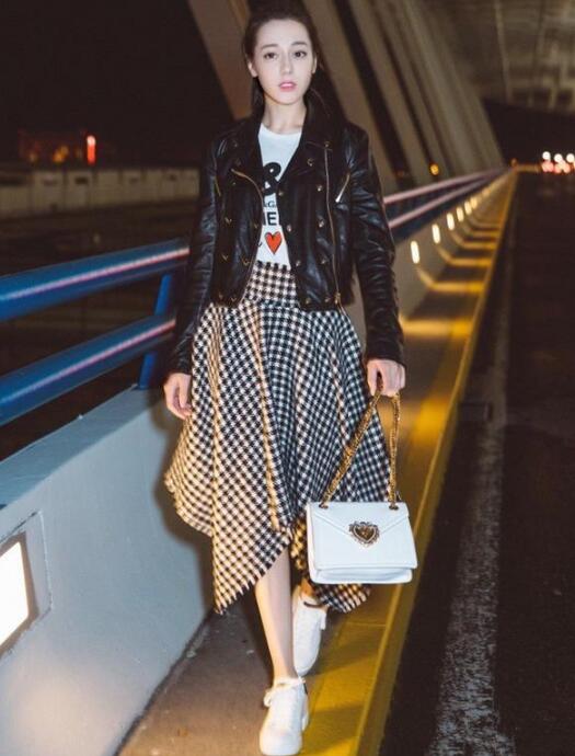 到了这7款皮衣搭配的最后一款啦~当格子裙,遇见短款皮衣,帅气中带着文艺范,经典又好看。皮衣里面搭上白色单品,和小白鞋相呼应,提亮了不少气色。手提白色包包,优雅又甜美。如果小仙女觉得黑色皮衣太过沉闷,get白色单品来提亮效果不错哟,酷帅又个性。