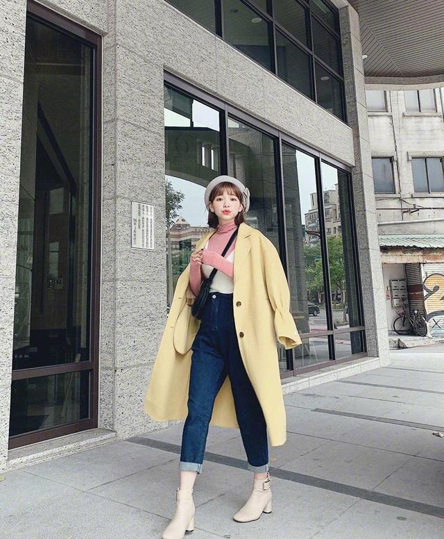 长款毛呢大衣在这个时间段,使用率会比较高。纯色系的毛呢大衣可以搭配糖果色的内搭服饰,一身层次感强烈的搭配手法,甜美又气质。虽然外套选择了纯色的格调,但这种淡黄色会让整个人变得高贵起来。内搭服饰选择皮粉色配白色,在色调上形成了跳跃感强烈的类型,用一件九分牛仔裤,让小个子变得高挑起来。其实小个子的女生在选择配饰的时候可以选择包包的带子比较短的类型,这样会更显高挑。