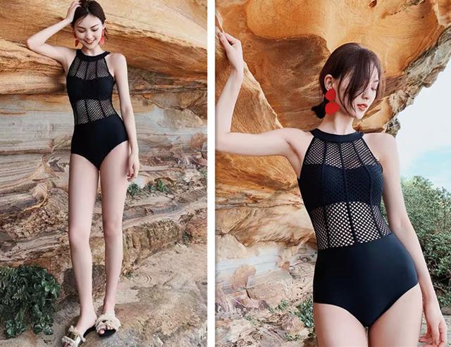 这款黑色蕾丝款的泳衣就比较大胆了,简单的连体三角的款式,能够完美的展现你的姣好身材,相反如果你的腰上有赘肉也能看的清楚。黑色蕾丝泳衣有哪些款式?这件泳衣原本是比基尼的样式,在拼接了黑色蕾丝之后更增添了不少性感,泳衣的后背是一个大大的镂空,心机又俏皮。采用防水透气的面料,柔软细腻穿着舒适,性感的三角底裤完美的勾勒臀部曲线,提臀又迷人。这款泳衣我推荐性感的长腿MM可以选择,吸进指数百分百~