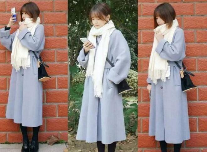 治愈系的雾霾蓝大衣有着斗篷状的设计,宽松的下摆,可以很好的遮掩小肚腩。袖子的设计也很不错,完美的修饰了手臂,袖口又很保暖,搭配一条纯白色围巾,非常有气质,这样的搭配就可以美美的度过冬天了。大衣围巾颜色搭配技巧