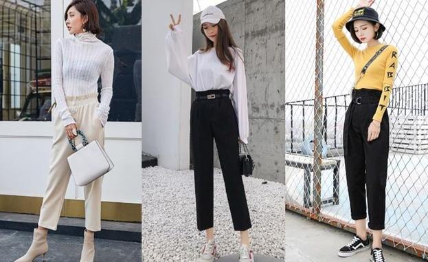 复古风情浓郁的花苞高腰裤对提升腰线、修饰腰围有着极好的作用,更是具备洒脱浪漫的造型感,九分裤帮助腿型扬长避短功力强大,衣摆扎入裤腰中,花苞高腰显瘦升级,上衣适度修身,穿搭强调高腰线是重点,小个也能穿出好比例与大气场。