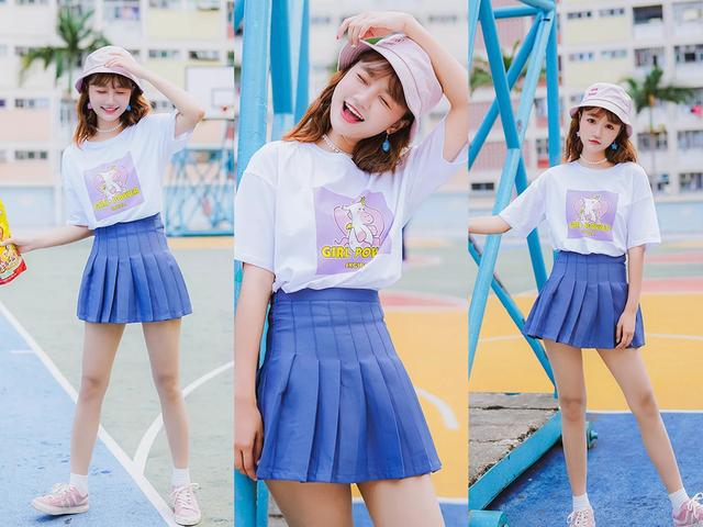 如果你问我今年穿什么才能时髦翻倍!那我的回答一定是T恤+百褶半身裙!这套搭配方法从不挑人,还可以显瘦,白色卡通印花的T恤满满是一种很清纯的打扮,透着一股浓浓的学院风,158的身高怎么搭配图片?对于正值青春年龄的你,这件T恤最适合不过了,下半身搭配百褶半身裙,高腰百褶的设计,能很好的把你的小肚子和大腿的肉肉藏起来,露出又长又直的大长腿,158的小个子女生穿起来瞬间的既视感是170的模特儿身材,时尚又高挑。