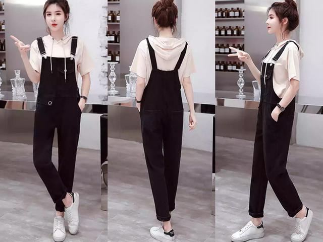背带裤除去是减龄显嫩的神器以外,其实还拥有拉长身材比例、显高的视觉效果。这款背带裤采用了修身宽松的裤筒设计,不仅能够让造型更有休闲的味道同时还能顺便修饰腿部线条,显高显瘦,一举两得,内搭简约风格设计的连帽卫衣,虽然没什么过于乍眼的地方,但是上身却十分的耐看,最适合夏季既时尚又日常的穿搭,让你轻轻松松便能凹出时髦的休闲风造型。