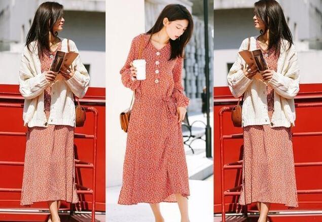 对于红色的小碎花连衣裙,是很百搭显肤色白的颜色,而且吸睛红色看到会让人有一种很喜悦的心情,也是别有一番气质,同时也显得很小清新气质,大块一些的印花,微胖型的姑娘穿最合适不过了,这条红色的小碎花连衣裙搭配白色针织开衫,穿上身特别的有淑女气质,还可以轻松应对早晚温差大的问题哟。