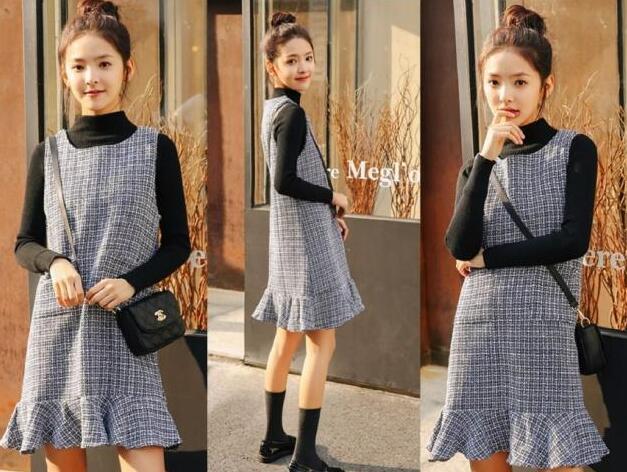 1、黑色毛衣搭配什么裙子?很小清新的一款搭配,简单的黑色毛衣,怎么穿都好看,因为这是比较修身的款,单穿可以轻松展示出你完美的身材曲线,如果身上有点肉肉的女生,可以外搭一款千鸟格背带裙,超减龄时尚的,并且这样穿想要显瘦效果实在太容易了,复古清新的千鸟格,时尚的代表,耐看又不那么容易过时,还很显年轻的,裙摆稍微做了鱼尾的设计,随意动起来灵动感十足,还很容易秀出你曼妙的身姿,超女人的哦,脚踏一双黑色凉拖和黑色中筒袜,这么穿真心好看,还超个性时髦的。