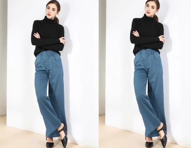 4、很百搭的黑色毛衣,是今年流行的款式,秋冬季节单穿或者内搭都是必get款,高领的设计,更适合冬天,不仅好看,还修饰你的脸型,保护你的颈部,满满的小设计心机,有点肉肉的女生,你千万不要错过哦,因为它可以给你带来显瘦又很美的身材哟,宽松的版型,超显瘦的,前面介绍了几款和裙子的搭配,这款选择了一款休闲裤,高腰+直筒的阔腿版型,立马展示出高瘦美的造型,关键的很显腿长,男装搭配,这么穿还阐释了女人优雅的魅力,炒鸡好看。