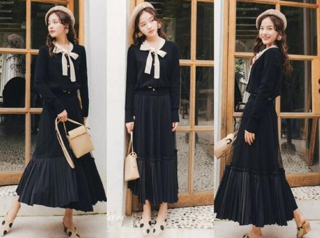 2、这是一款甜美感十足的黑色毛衣,软萌妹子们,还是你喜欢的吗?今年尤其流行的,简简单单的款,搭配撞色的蝴蝶结绑带装饰,瞬间提升了衣服的时髦feel,甜美的同时,少女感满满的,稍微略宽松的版型,搭配黑色高腰半身裙,轻轻松松就可以秀出你完美的大长腿,关键的是显瘦,你懂得,整套都是黑色的调调,尽显优雅女生气质,真心美。
