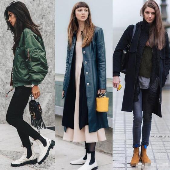 切尔西靴:低跟、窄口、高及脚踝、无鞋带、侧面有松紧带的靴子。造型简单,穿着舒适。搭配屋,颜色以黑色、棕色为主。我比较喜欢这种鞋子,因为穿着没有束缚感,很自在,最重要的仍然是百搭性,给人很简单大方的感觉。