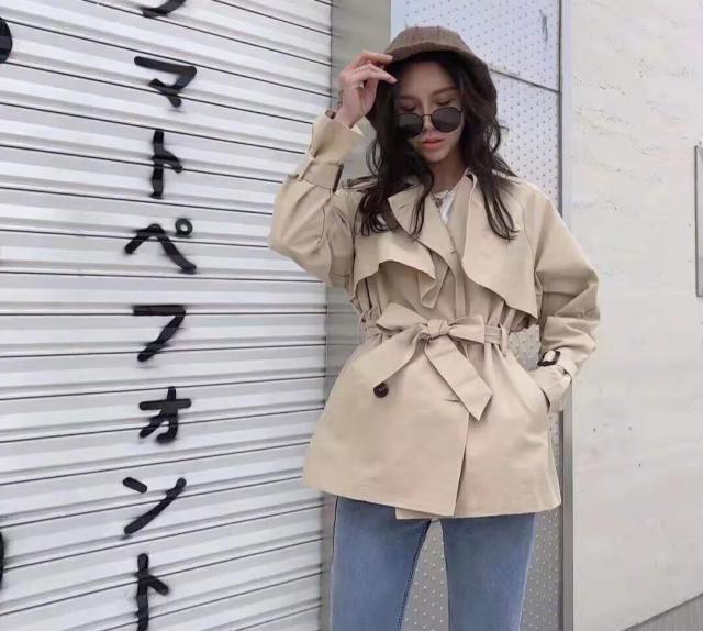 A字版的韩版风衣,完全是萌妹子必备风衣,可盐可甜又带有颇为时髦的衣服,搭配的适宜很符合小香风的女孩的气质。收腰的款式显得腰围纤细,又能让腹部的肥肉完全隐藏,A字版型搭配小裙子,也是显得可爱又大方。腰间带有腰带,系起来又是一款修身的衣服,换种穿法也不俗。